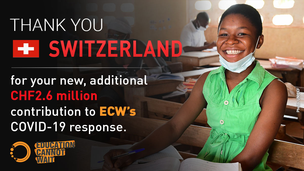 Thank you Switzerland for your generous and steadfast support to #EducationCannotWait @SwissHumAidUnit @swiss_un @ThomasGass Manuel Bessler @HandschinSabina