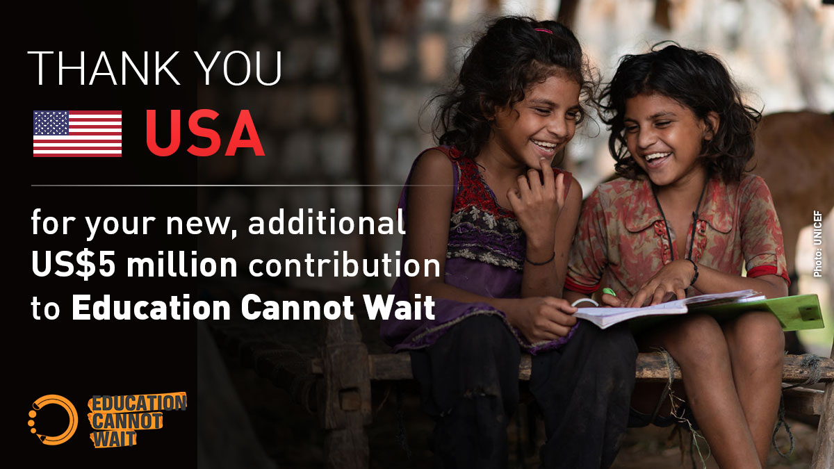 #ECW warmly welcomes this new additional contribution from the #USA! This will assist ECW & our partners to reach vulnerable children & youth caught in emergencies & protracted crises - now doubly hit by #Covid19 - with quality education! @StatePRM @USAID @USAIDEducation